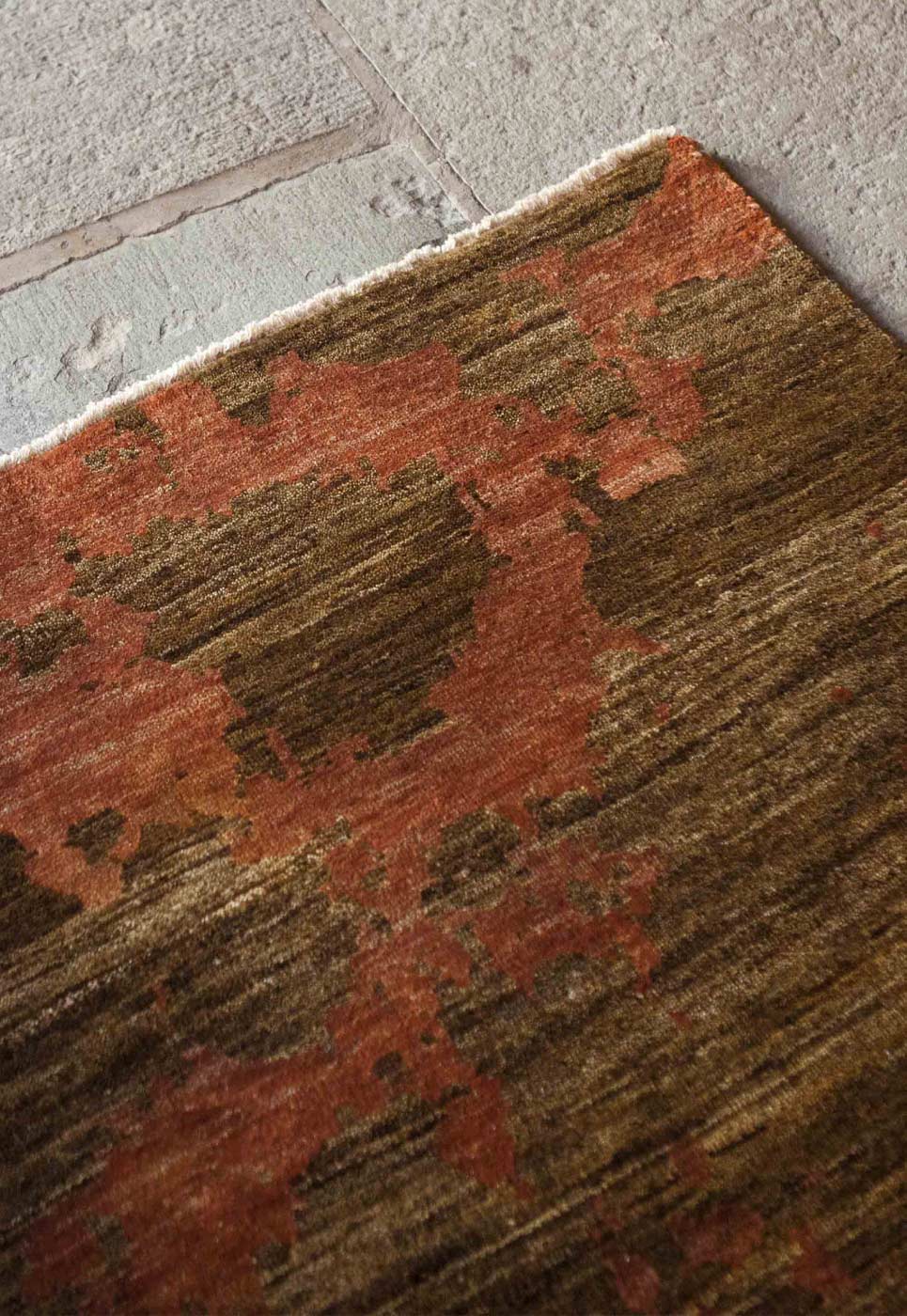 A brick-lined alley. A mosaic of crumbled asphalt. A windowless stretch, inviting the crossing of a threshold. Entry points all, from a place of compression to expansion, and finally, illumination. Where a profusion of richly saturated color, rendered in silk, pirouettes across a field of wool. Passage, indeed.